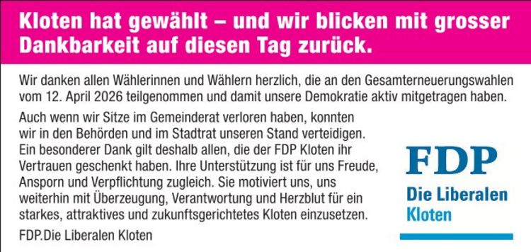 Kloten hat gewählt – und wir blicken mit grosser Dankbarkeit auf diesen Tag zurück.